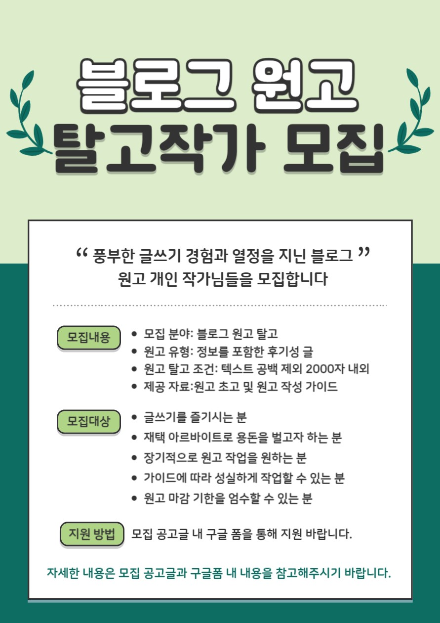 쉬운업무로 많은 물량을!_ 블로그 후기성 원고 탈고 진행해주실 작가님들을 모집합니다